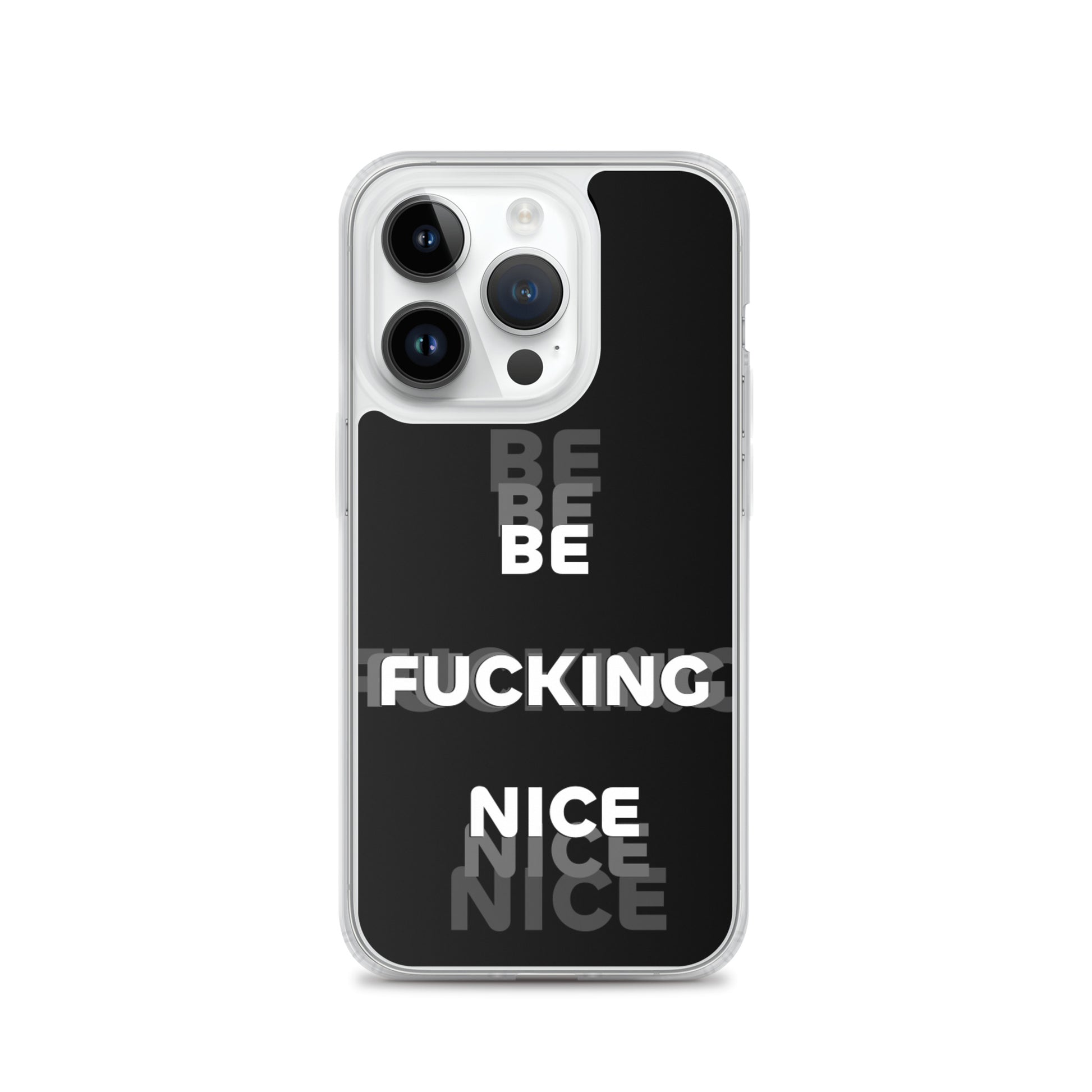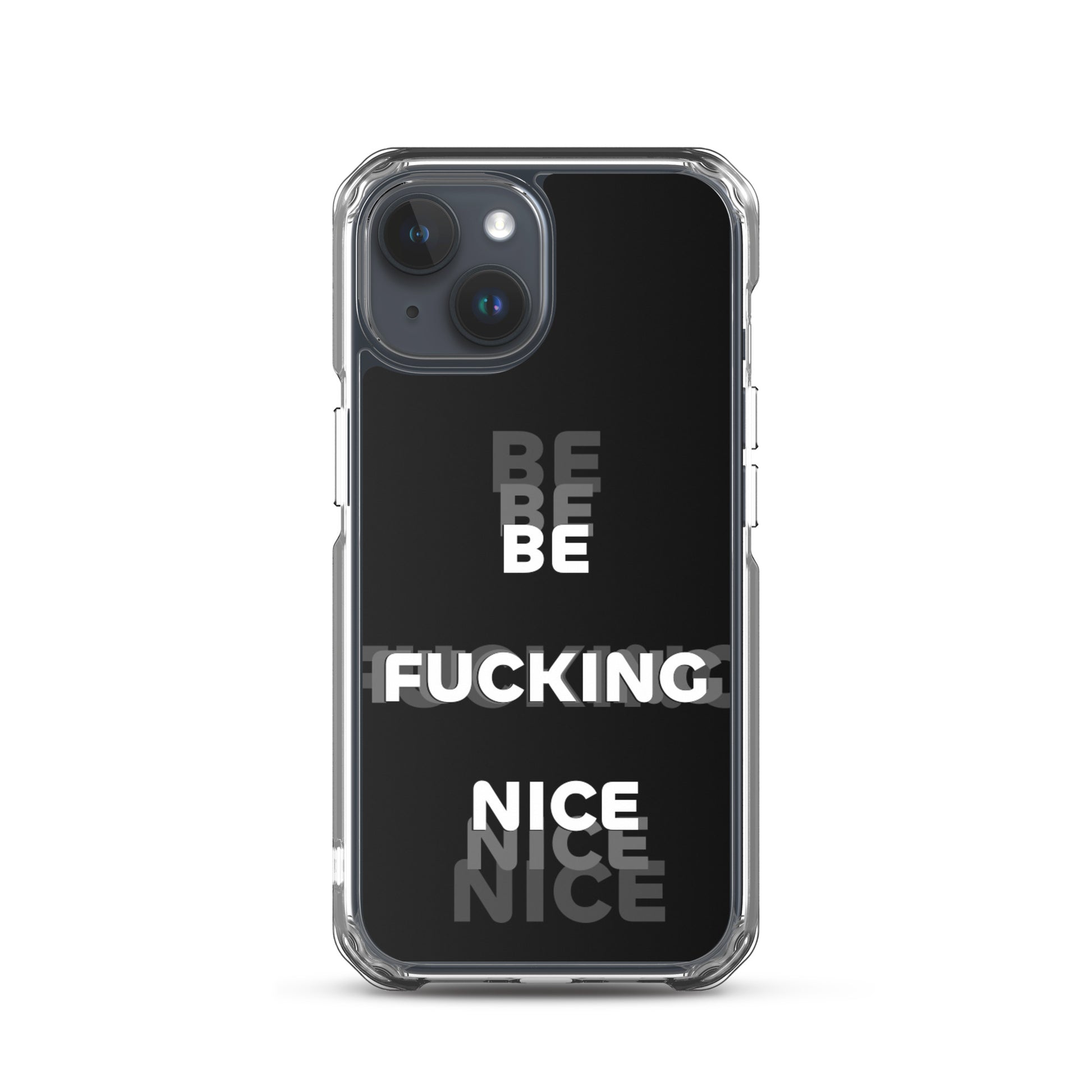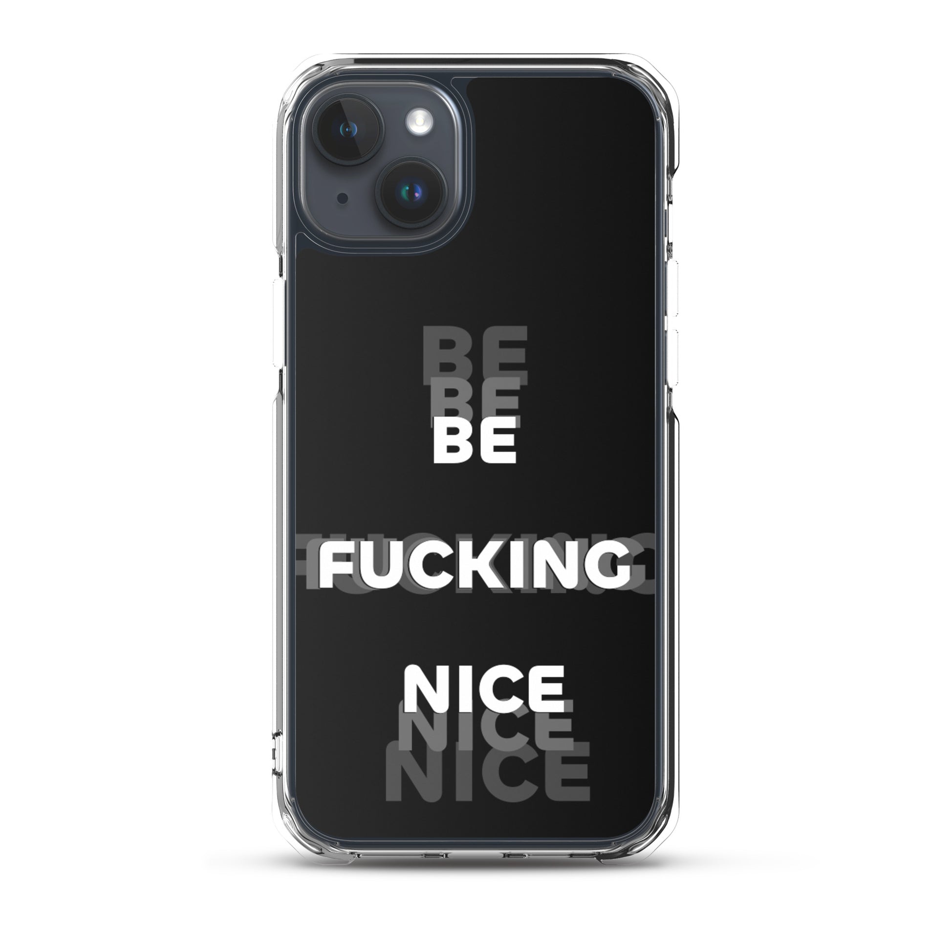Be Fucking Nice (Black w/ Clear Sides iPhone Case)