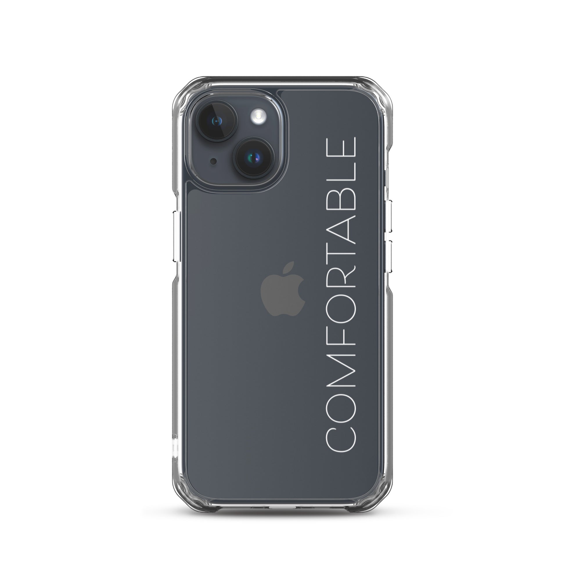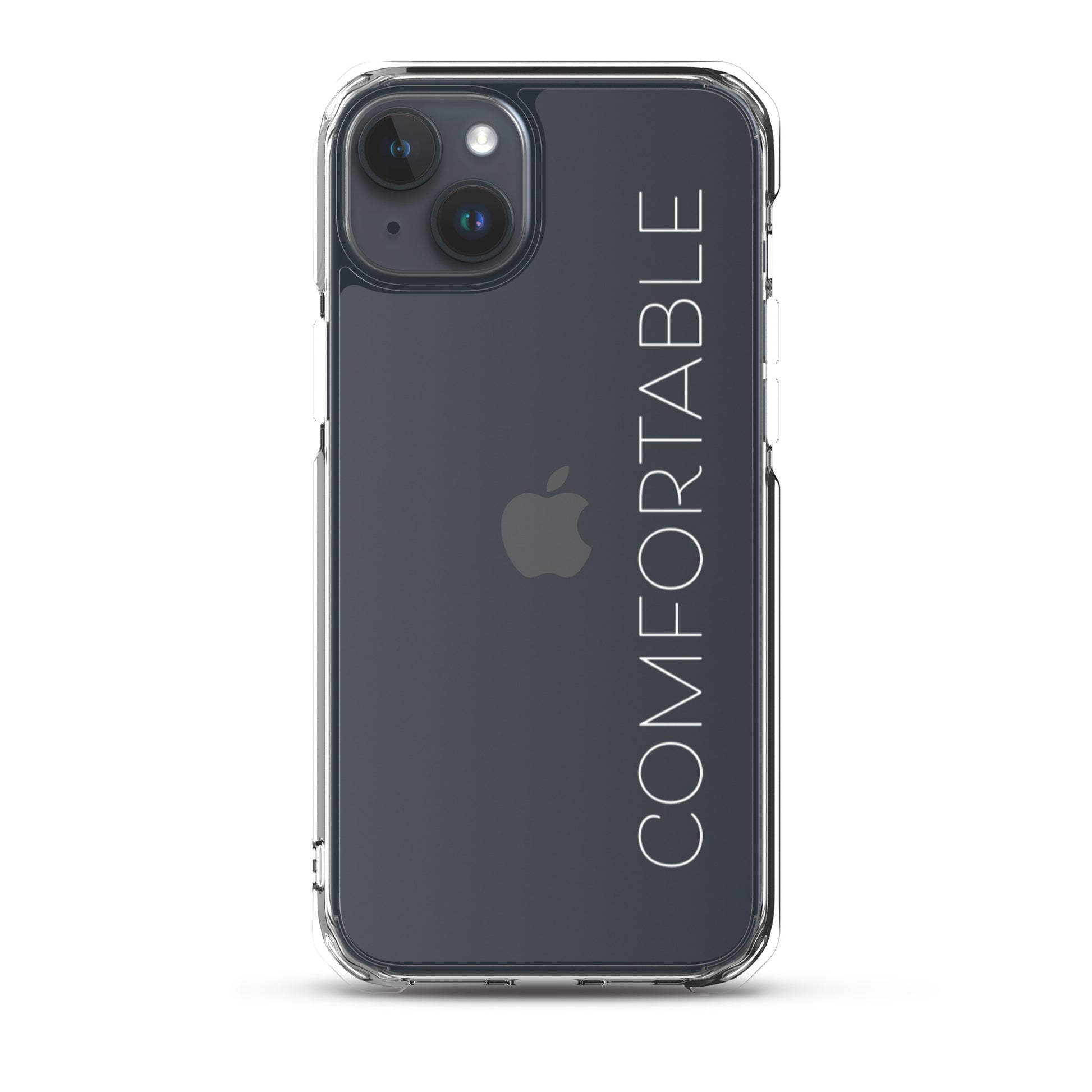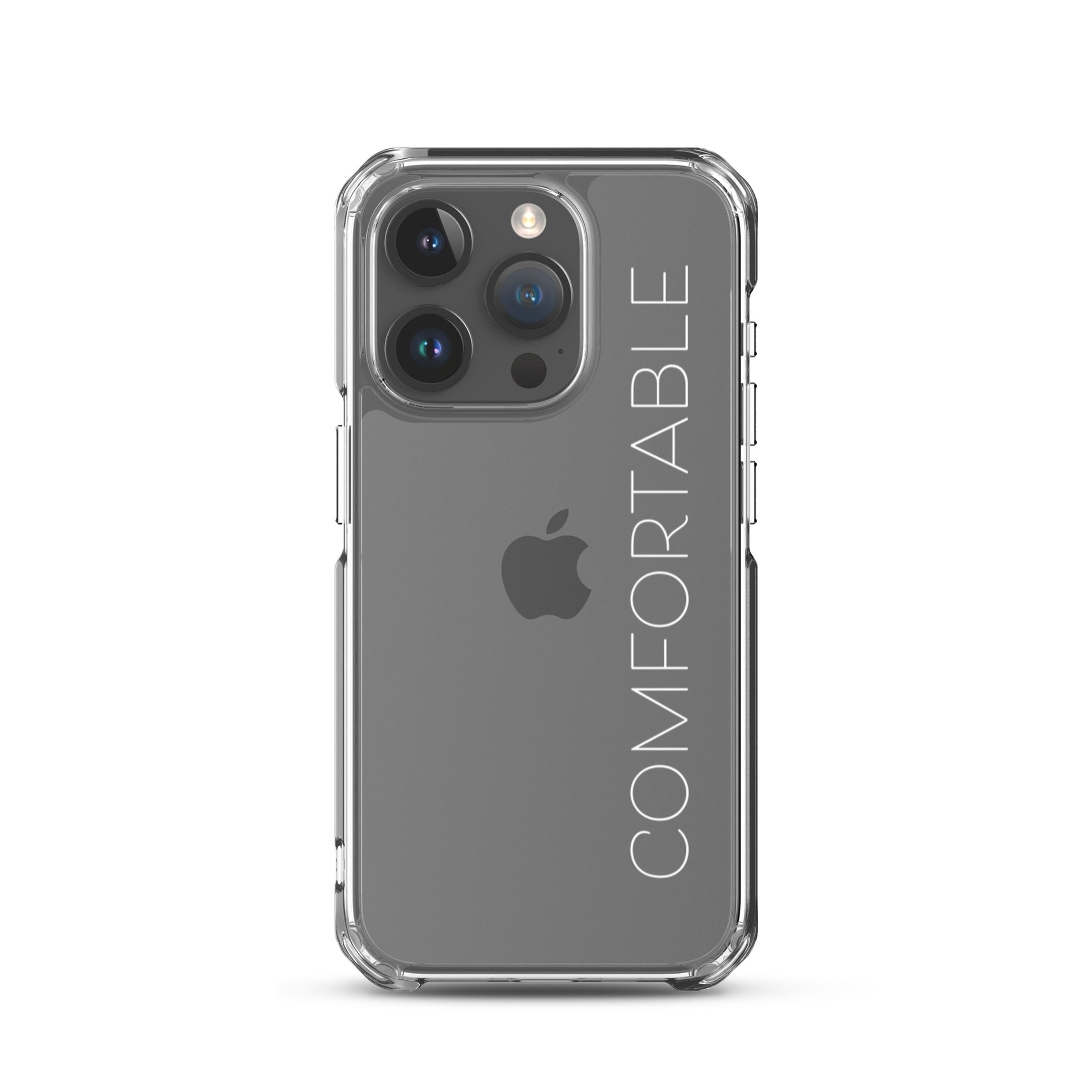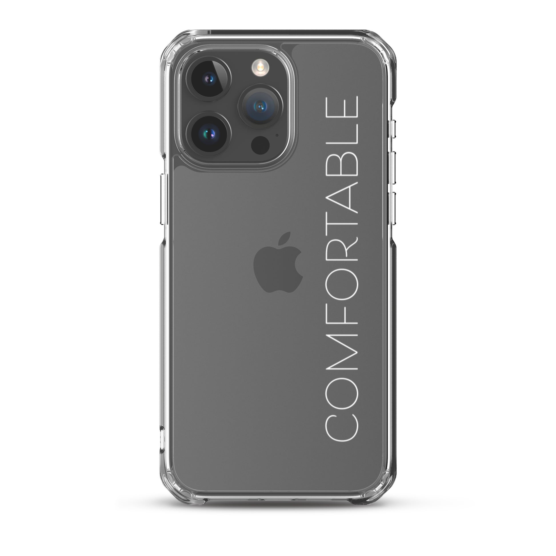 "Comfortable" Clear iPhone Case (White Text)