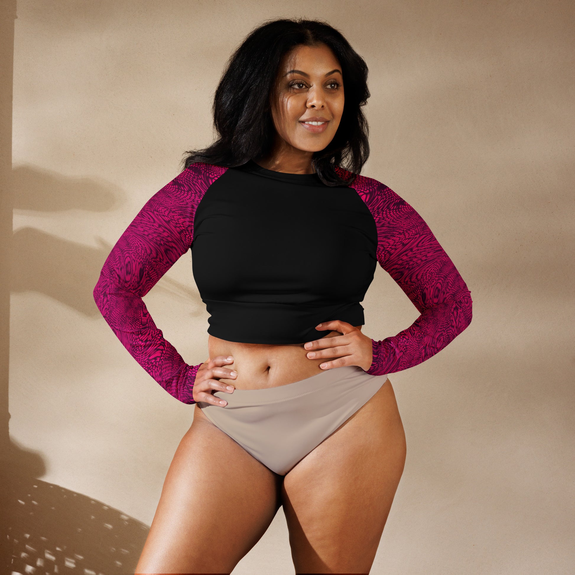 Fractal Long-sleeve Crop Top (Hot Pink)