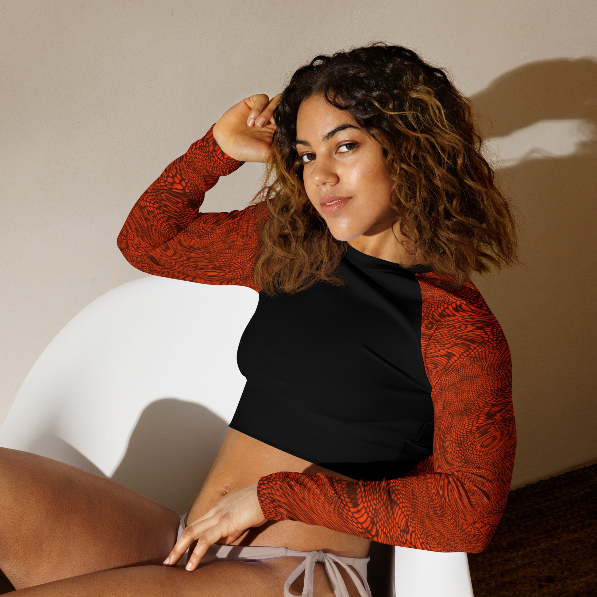 Fractal Long-sleeve Crop Top (Orange)