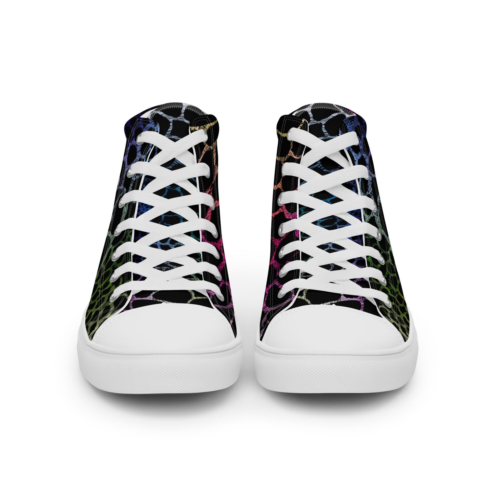Elevate your shoe game with our handmade Wild Rainbow Outline Men’s High Top Canvas Shoes. These trendy and unique shoes are the perfect addition to any festival outfit or casual look.