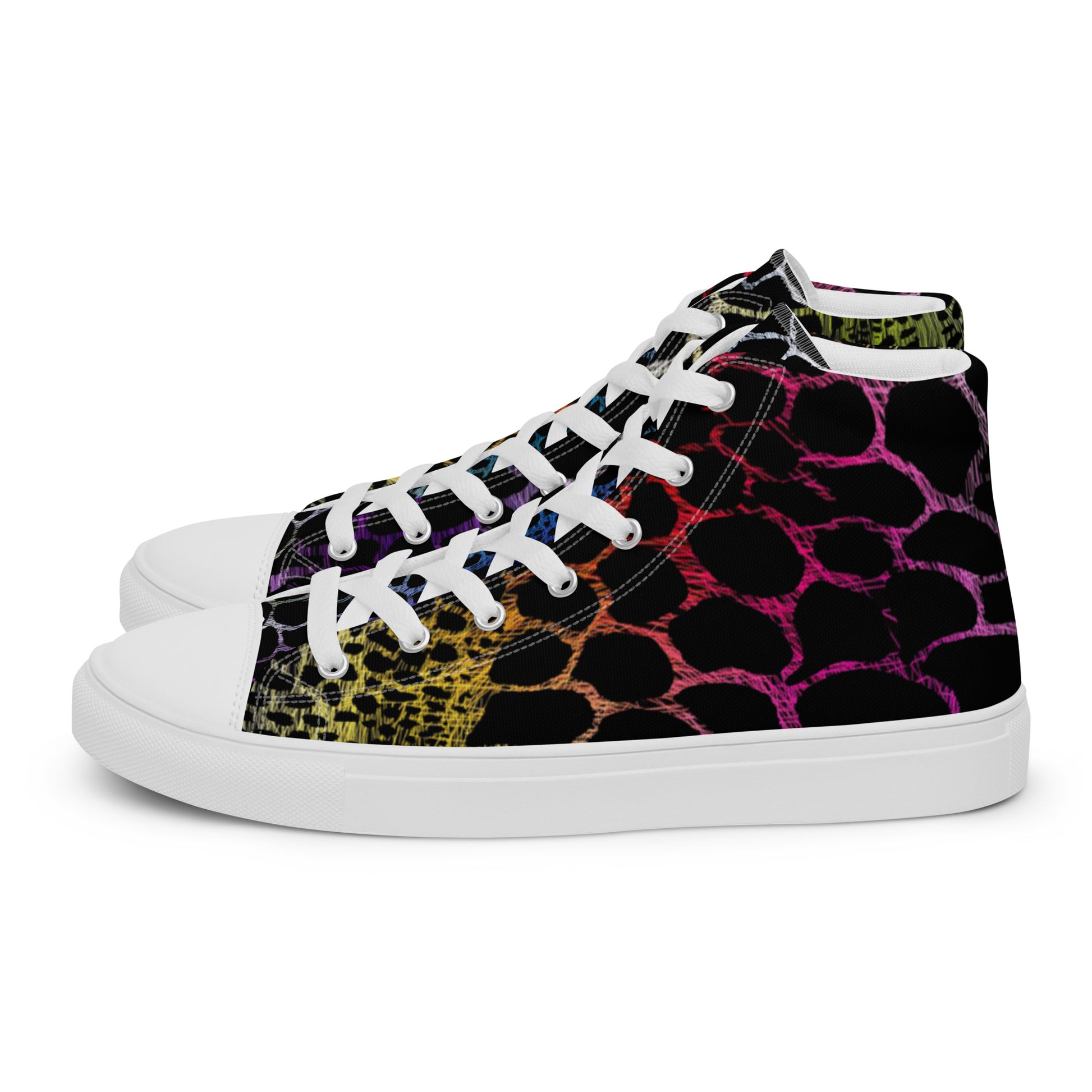 Wild Rainbow Outline Women’s High Top Canvas Shoes